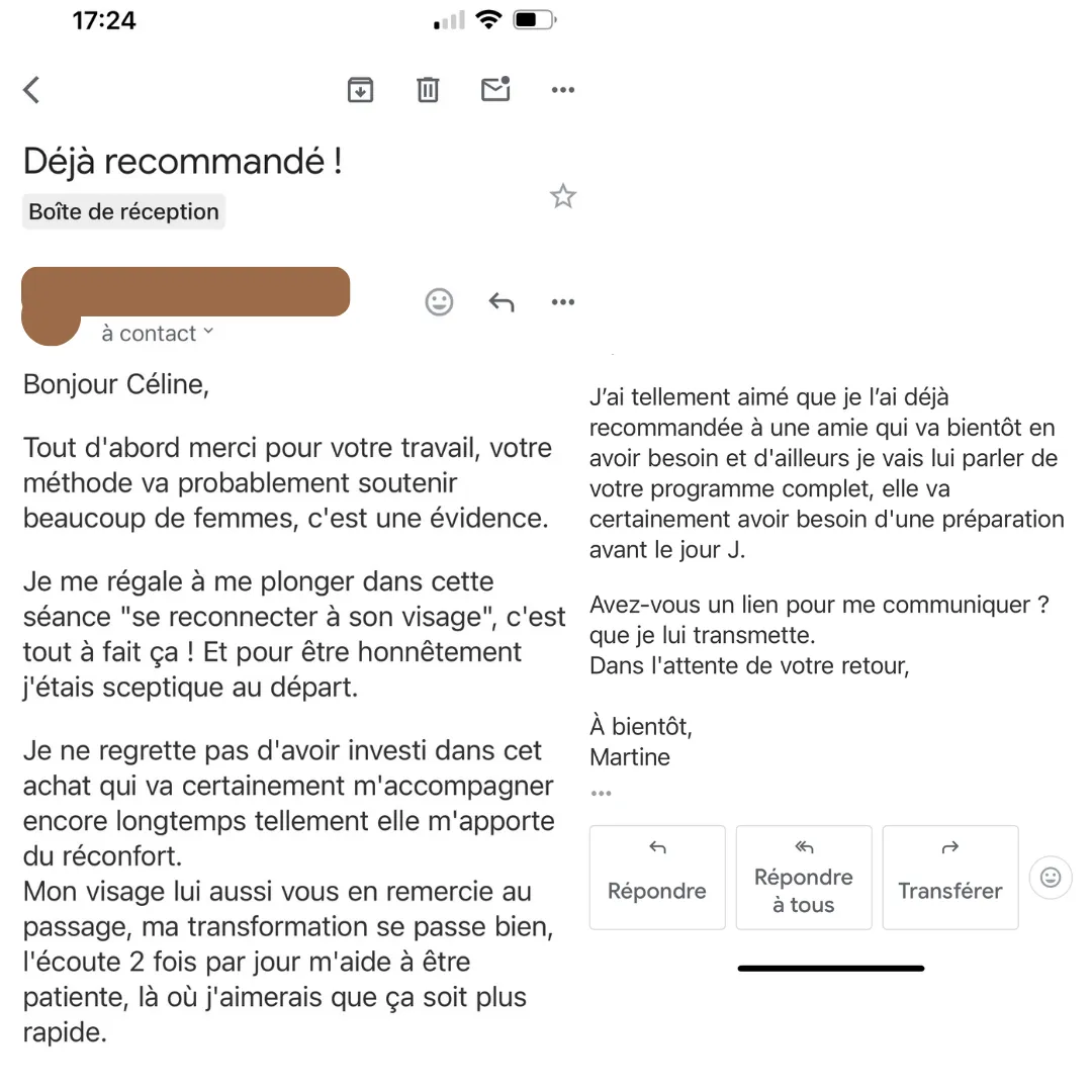 Depuis, je dors mieux, je me sens plus présente… et surtout, j’ai décidé d’aller plus loin en investissant dans le programme complet.»