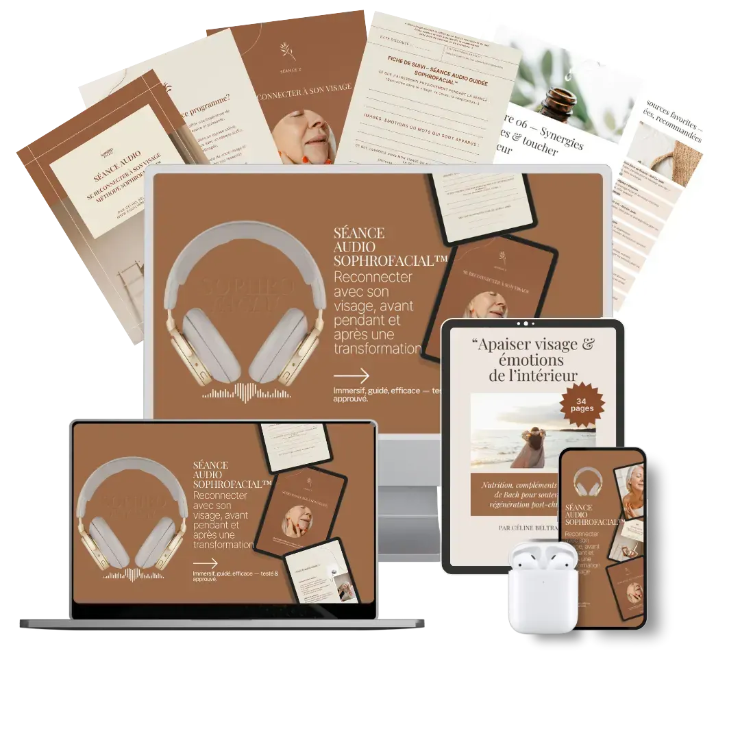 Un guide 100 % naturel de 34 pages pour prolonger les effets de la séance et soutenir ton visage de l’intérieur.